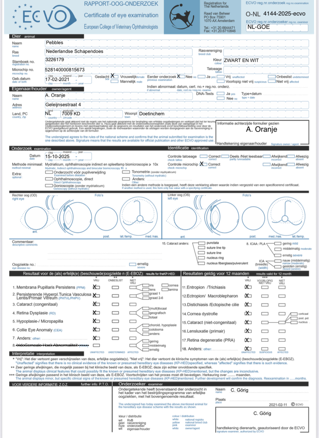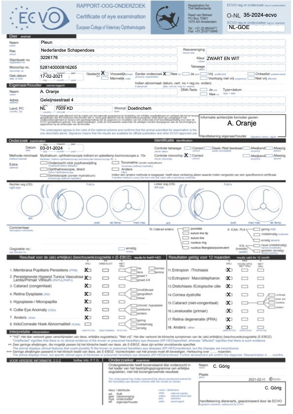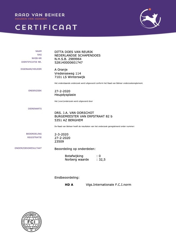 Vraag altijd om gezondheidsonderzoeken bij de fokker. De gezondheidsonderzoeken moeten bij de ouderhond horen.