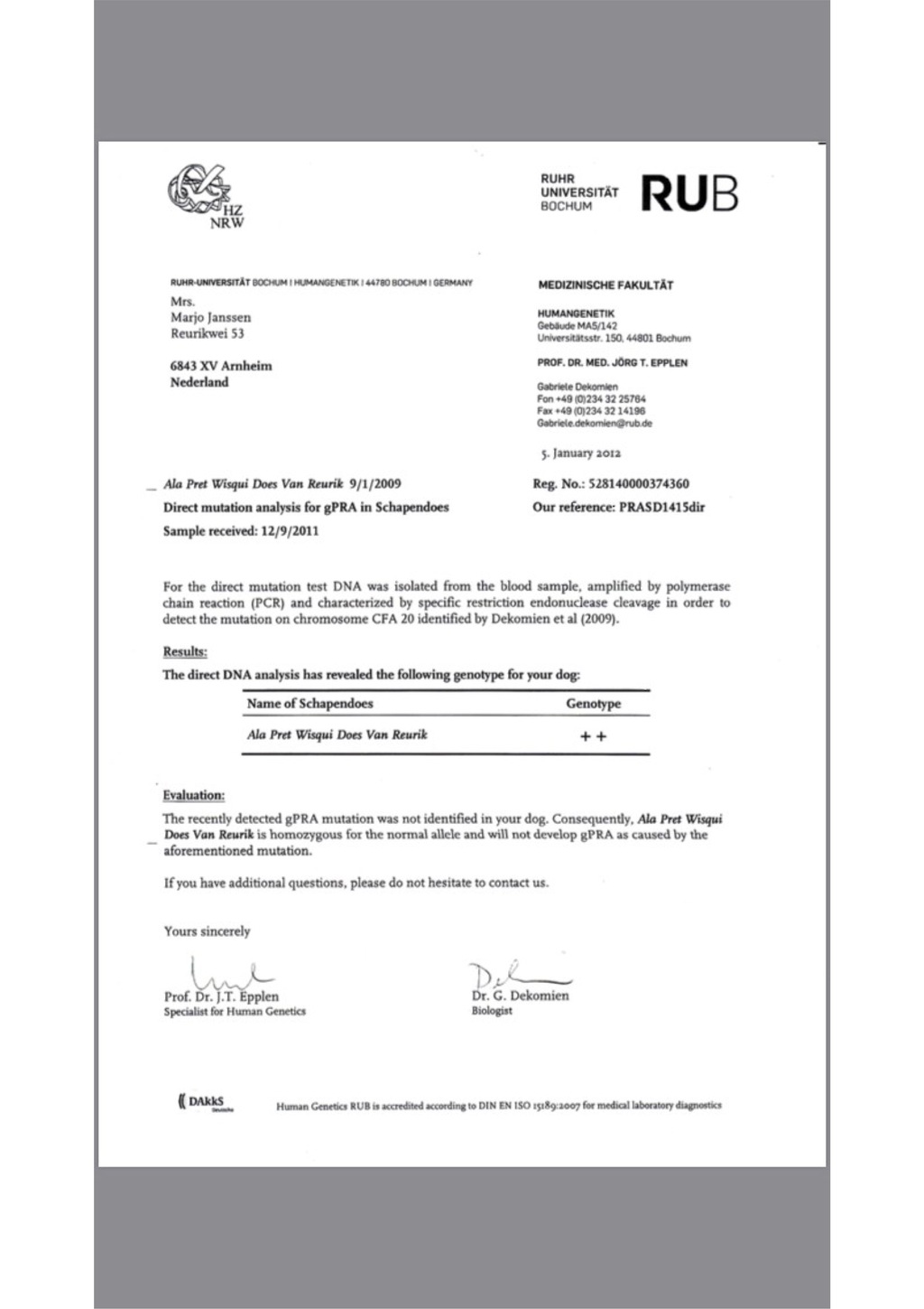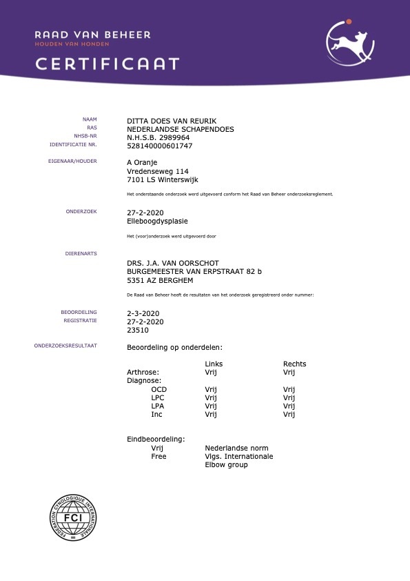 Vraag altijd om gezondheidsonderzoeken bij de fokker. De gezondheidsonderzoeken moeten bij de ouderhond horen.